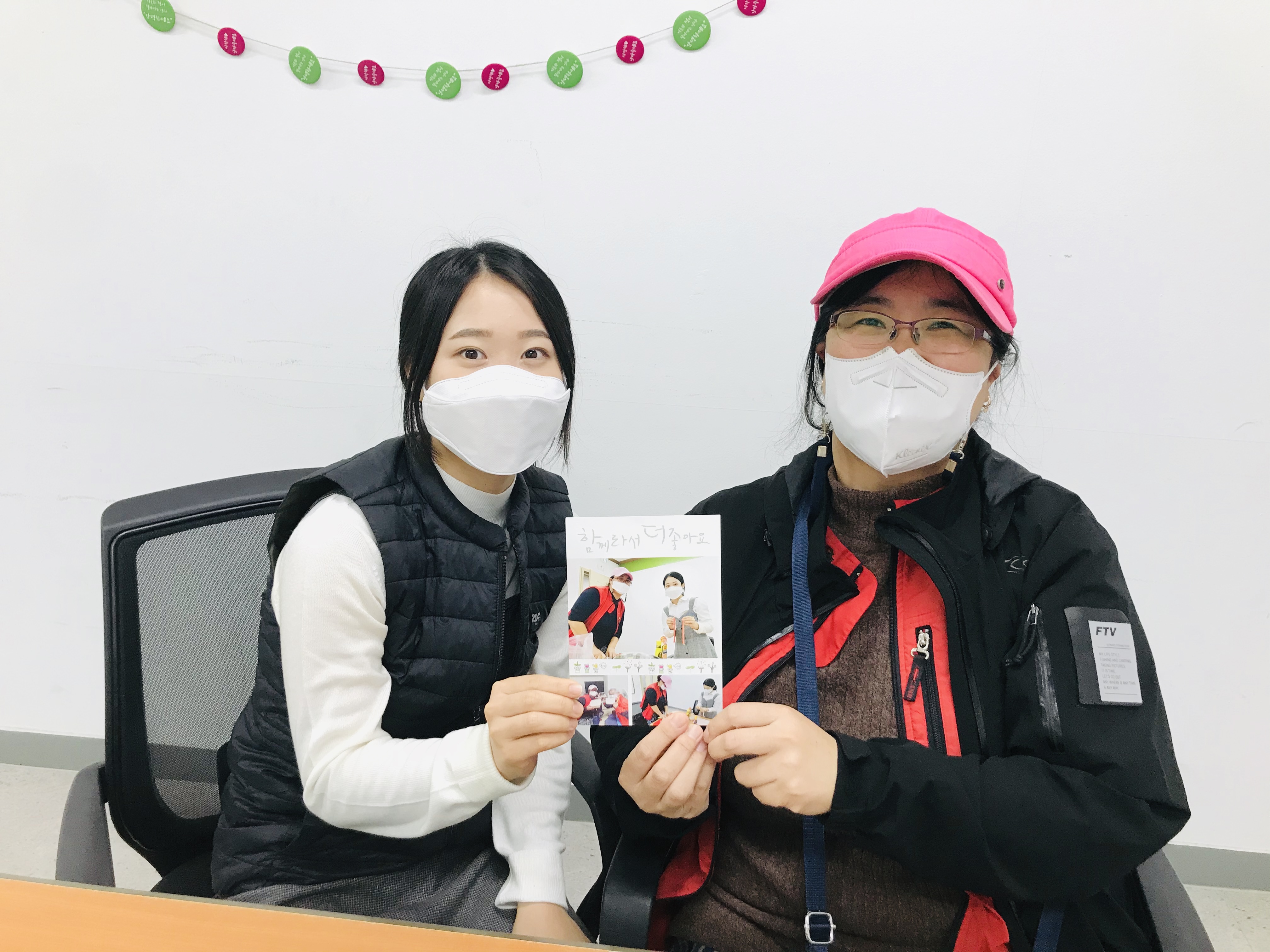 "장보영 님 이거 저희 추석 잔치 때 찍었던 사진을 인화해서 엽서로 만들었어요.