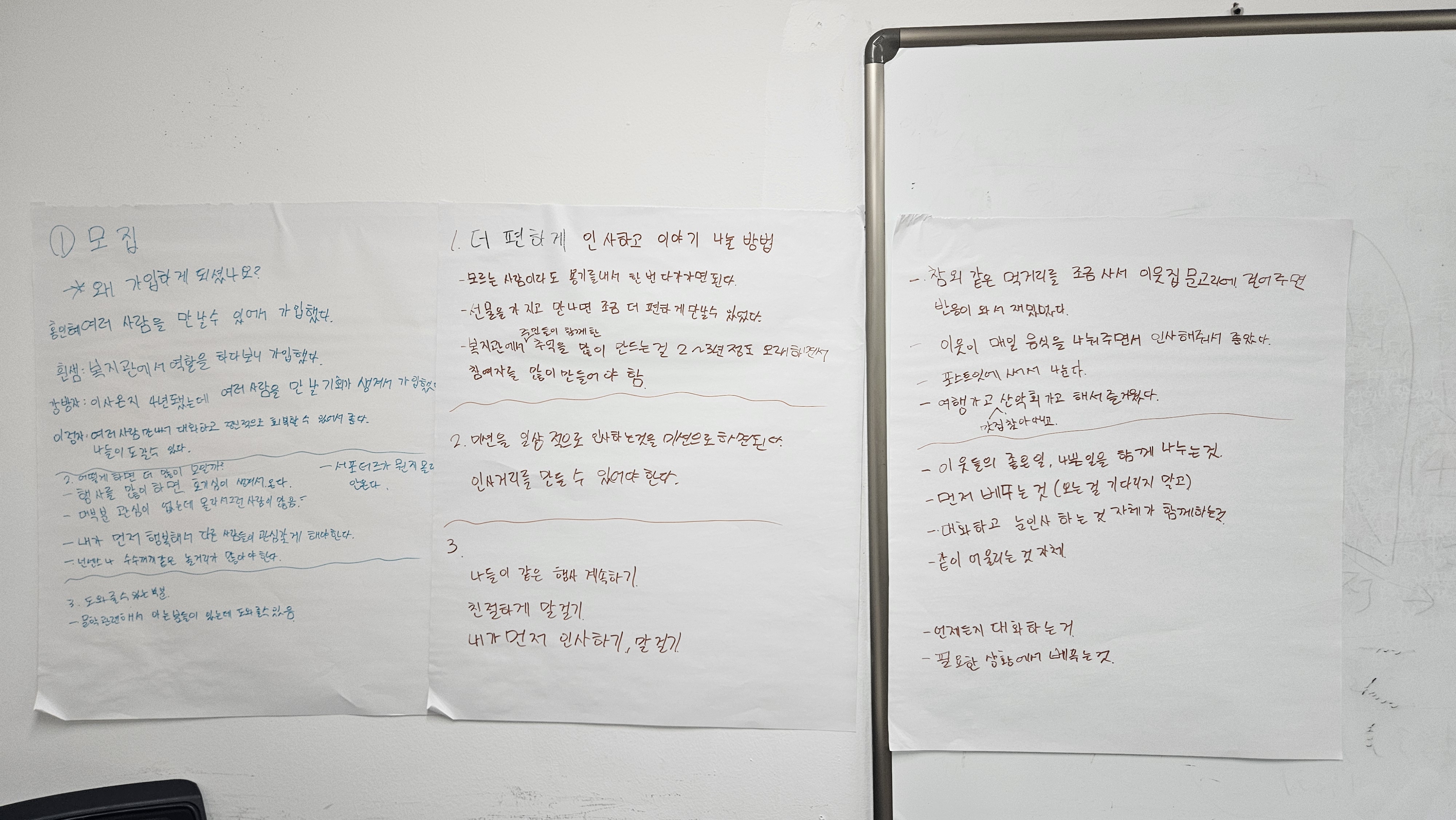 아래는 워크숍에서 나온 주민분들의 이야기입니다.
