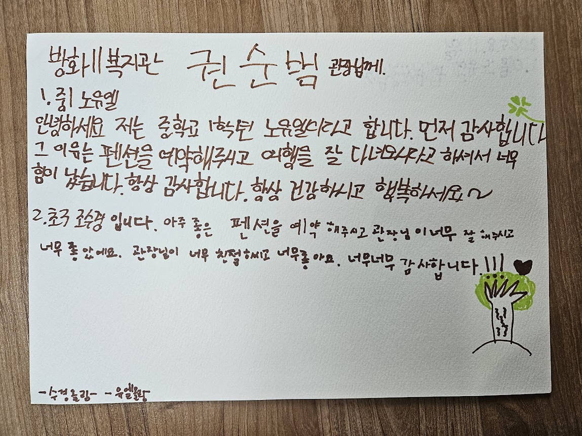 이번 방우리 여행을 도와준 여러 선생님들께 감사의 마음을 담아 편지를 썼습니다.