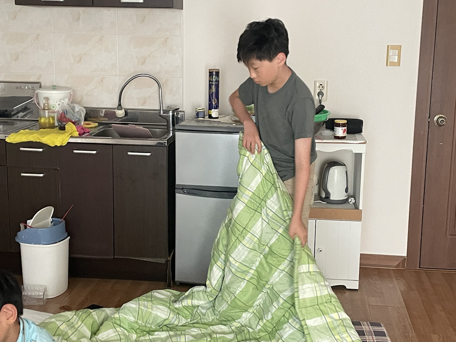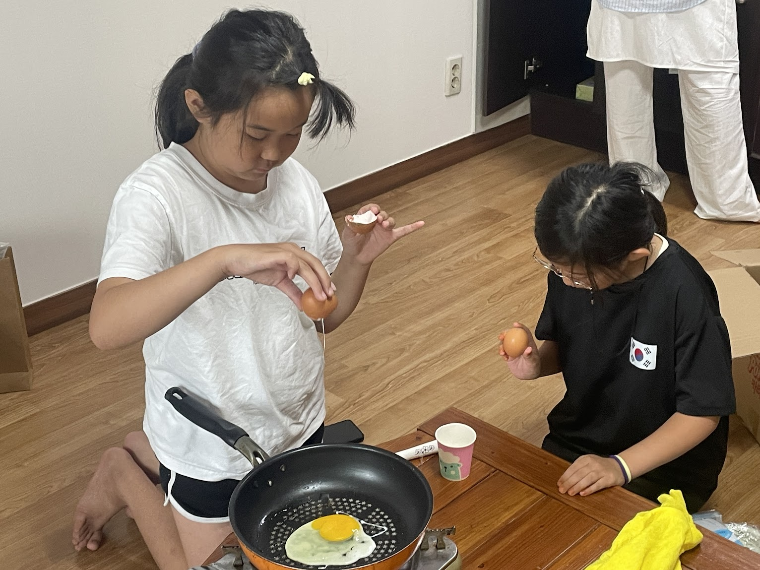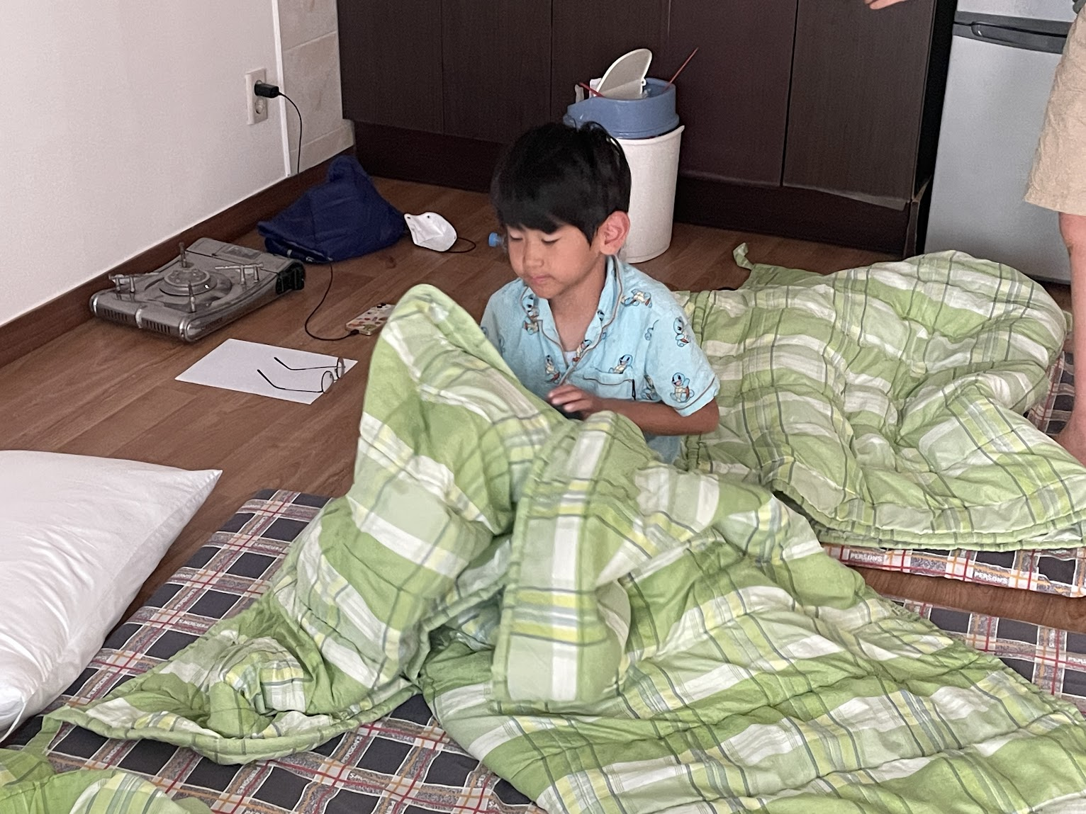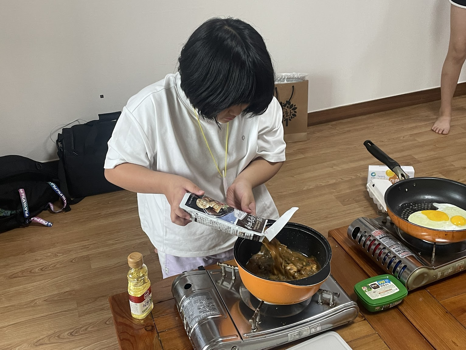 다음 날 아침 아동들은 스스로 이불을 정리하고 아침 식사도 스스로 만들어 먹었습니다.