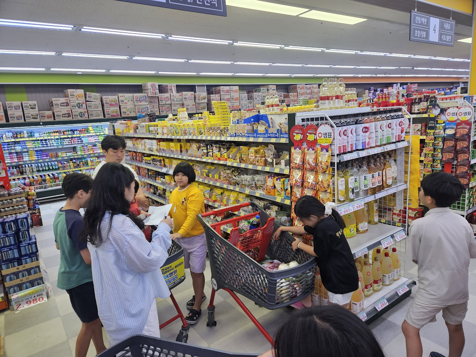 식사팀의 주도하에 점심, 저녁, 다음 날 아침 식사 준비를 위해 장을 봤고